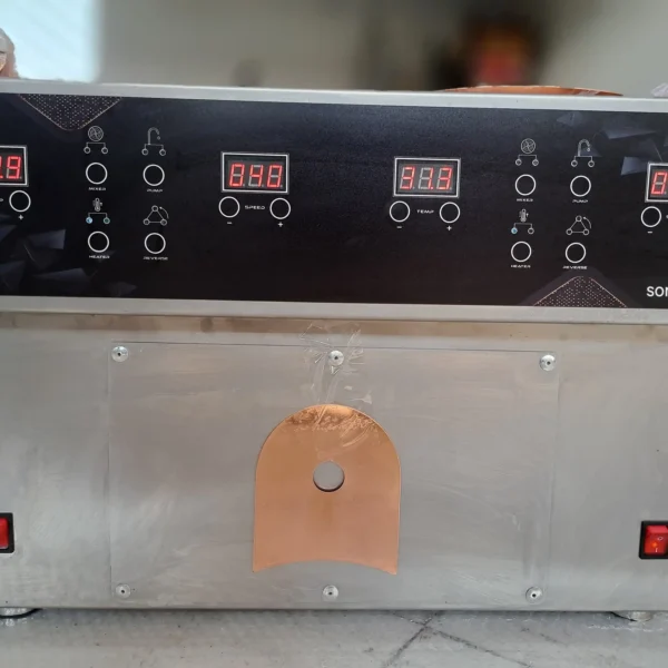 این دستگاه شکلات را بهصورت آبشاری ذوب کرده و یکنواخت گرم میکند، مناسب تولید و بستهبندی شکلات است.